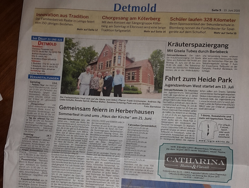 Zeitungsannonce in Lippe-Aktuell vom 13. Juni 2015