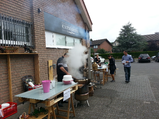 Es gibt Kartoffeleintopf nach Friesenart, Schaschlikspieße, Waffeln und Tee aus dem Samowar