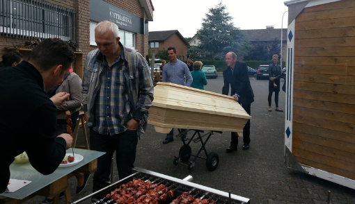 Ein Sargdeckel optimiert das Arbeiten an einem Sarggesteck